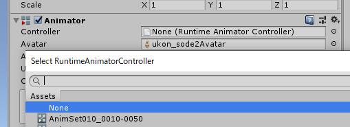 これでAnimationの準備は完了なので、AnimatorからAnimatorControllerを外しておきましょう。